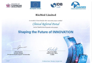The Security and quality commitment of RioMed has earned us a distinguished grant award –Shaping the Future of Innovation by The Caribbean Industrial Research Institute (CARIRI). This program exemplifies Caribbean innovation supported by the European Union, the Trinidad and Tobago government, and IDB Lab, with CARIRI as the executing agency. RioMed has received this award for the innovation project – Clinical Referral Portal.