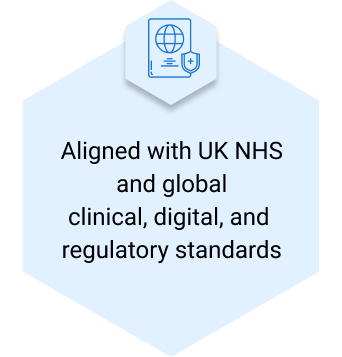 Built to meet NHS Digital and global standards, supporting HL7, FHIR, SNOMED CT, ICD-10/11, and secure data exchange across Integrated Care Systems (ICS).