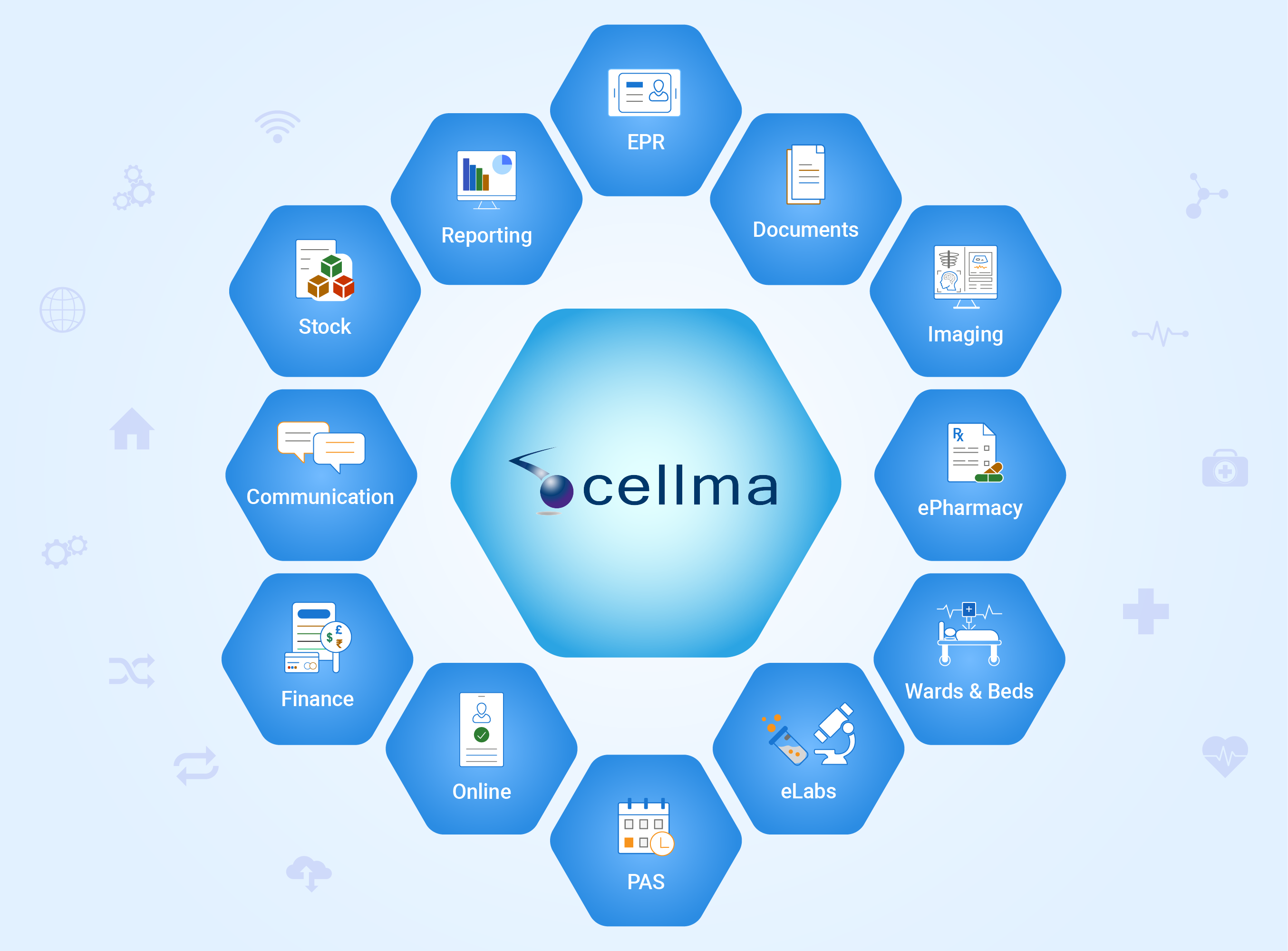 Additionally, Cellma offers more specific modules such as e-Pharmacy, Pathology, Imaging, Ward & Theatre, Finance, BI & Reporting, and many more.